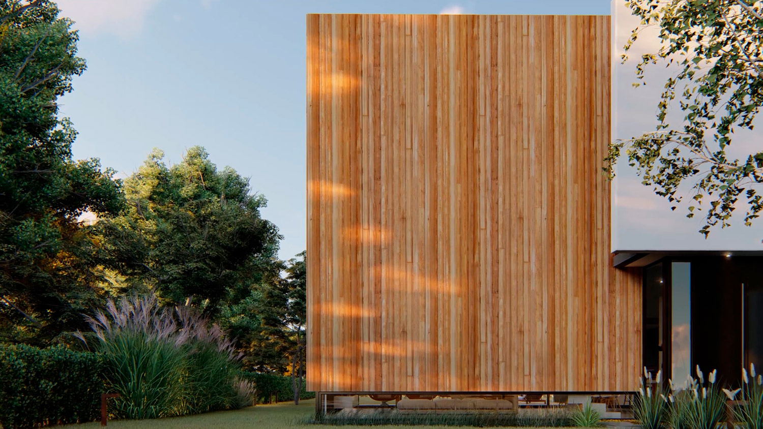 HOUSE F se percibe como un prisma blanco puro inserto en un entorno de gran valor paisajístico. Su geometría se fragmenta en una de sus aristas, dando lugar a un nuevo volumen de menor tamaño, revestido en madera y que se despega del piso para dar la sensación de levitar. Como consecuencia, permite el ingreso de luz natural y actúa como indicador al ingreso de la vivienda. Los espacios tanto públicos como privados, se abren hacia el patio para reforzar la relación interior-exterior pero las fachadas externas del frente tienden a ser una cáscara opaca para garantizar una mayor privacidad frente al entorno inmediato.